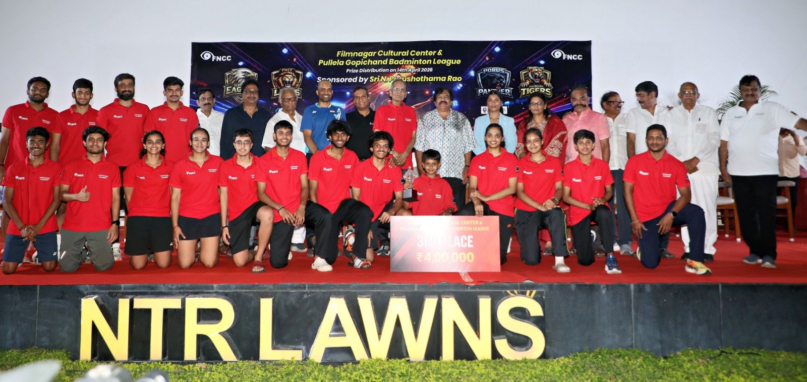 Fncc badmintem league pullelagopichand : హైదరాబాద్‌లోని ఫిలింనగర్ కల్చరల్ సెంటర్ (FNCC), దిగ్గజ కోచ్ పుల్లెల గోపీచంద్ బ్యాడ్మింటన్ అకాడమీతో కలిసి నిర్వహించిన ‘FNCC-పుల్లెల గోపీచంద్ బ్యాడ్మింటన్ లీగ్’ (FNCC-PGBL) క్రీడాకారుల్లో మంచి జోష్ నింపింది. ఏప్రిల్ 4న ప్రారంభమైన ఈ ప్రతిష్టాత్మక లీగ్ ప్రతి శని, ఆదివారాల్లో ఫిలింనగర్ క్లబ్ వేదికగా వైభవంగా జరిగింది. దేశవ్యాప్తంగా ఉన్న టాప్-10 పురుష, మహిళా క్రీడాకారులు ఈ లీగ్‌లో పాల్గొని తమ నైపుణ్యాలను ప్రదర్శించారు. టాలీవుడ్ ప్రముఖులు, క్రీడా దిగ్గజాల సమక్షంలో జరిగిన ఈ టోర్నీ బ్యాడ్మింటన్ ప్రియులను విశేషంగా ఆకట్టుకుంది. ఈ లీగ్‌లో మొత్తం ఆరు జట్లు తలపడగా, ప్రతి జట్టు 10 లక్షల రూపాయల ఎంట్రీ ఫీజుతో బరిలోకి దిగాయి.